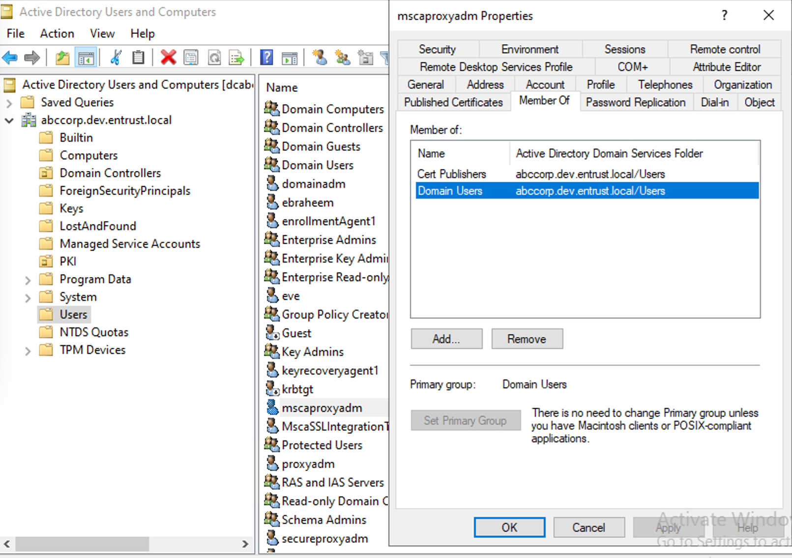 - Add the users only to the Cert Publishers and Domain User groups.