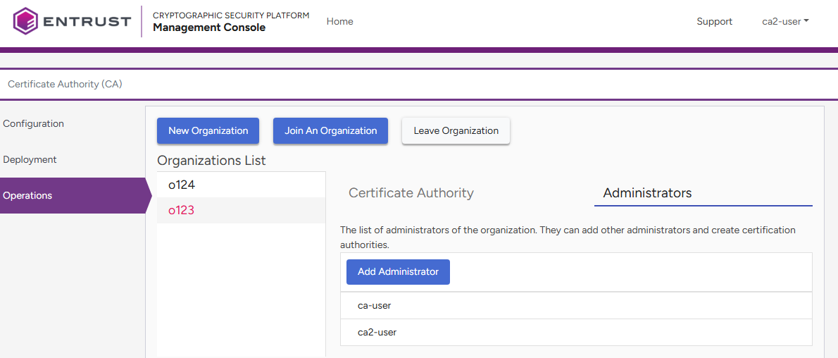 For administrators to be added, you must previously register them as explained in Creating Certificate Authority tenants.