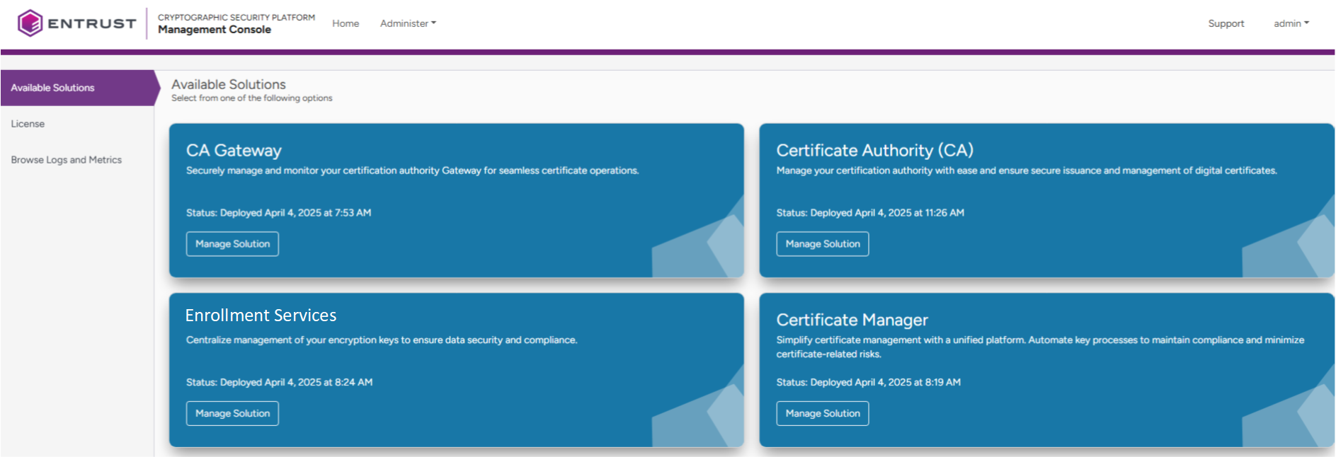 3. In the content pane, click Manage Solution under Certificate Enrollment Gateway.