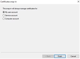 - In the tree view, expand Console Root > Certificates – Current User > Personal.