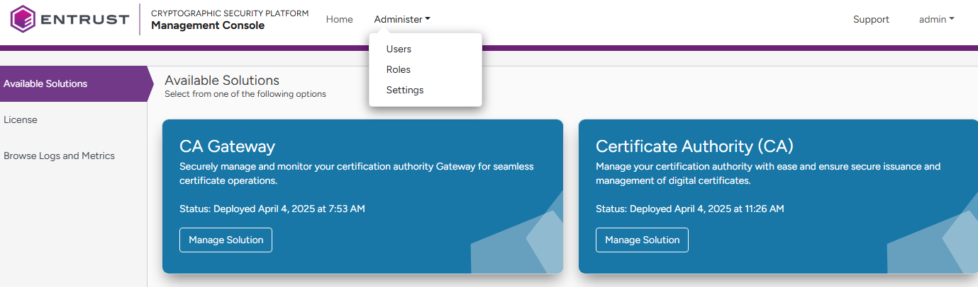 Where <machine> is the IP address or domain name of the machine hosting Cryptographic Security Platform.