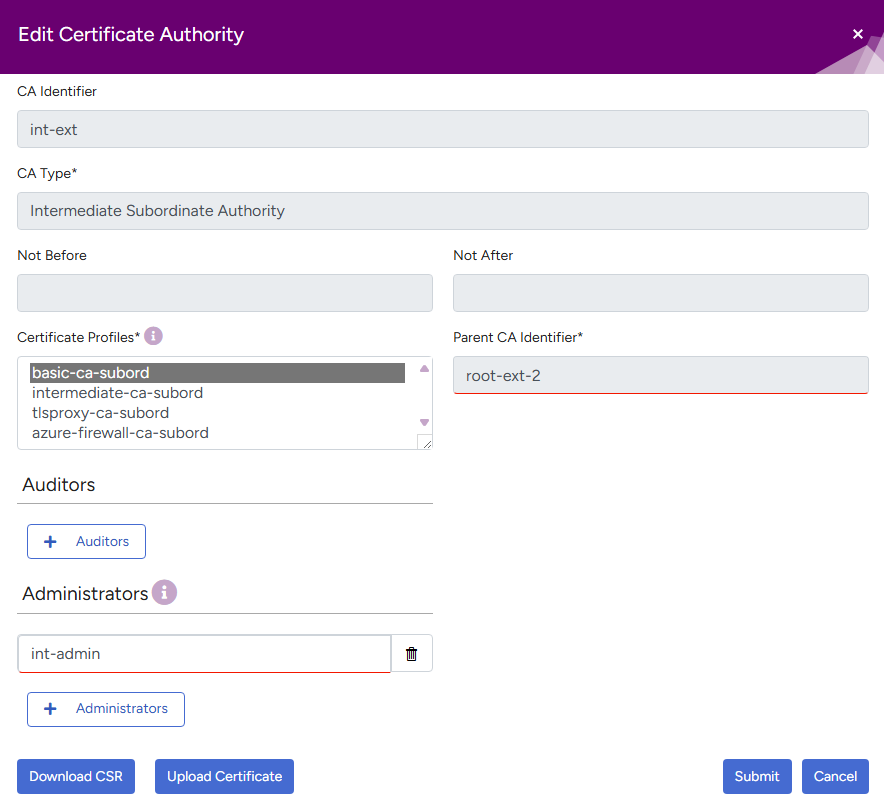 - Click Download CSR in the Edit Certificate Authority dialog.