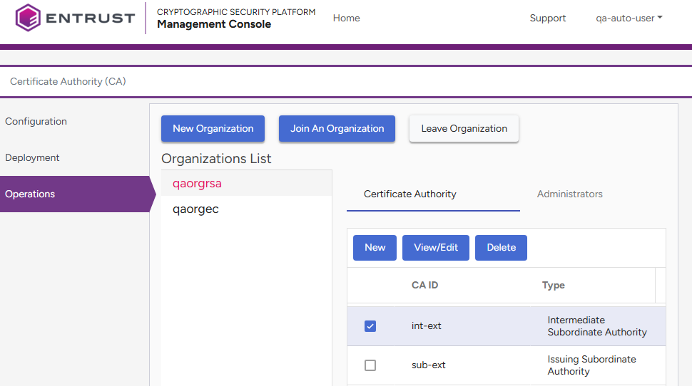 - Under Organizations list, select the organization to which the intermediate or issuing CA belongs.