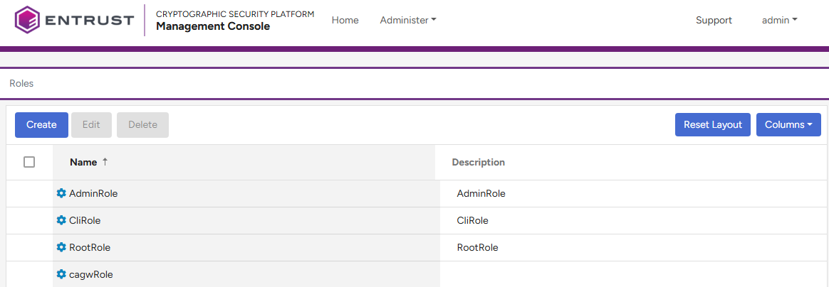 <machine>is the IP address or domain name of the machine hosting Cryptographic Security Platform.- Log into the Management Console a user belonging to a role with role management permissions – for example, the initial