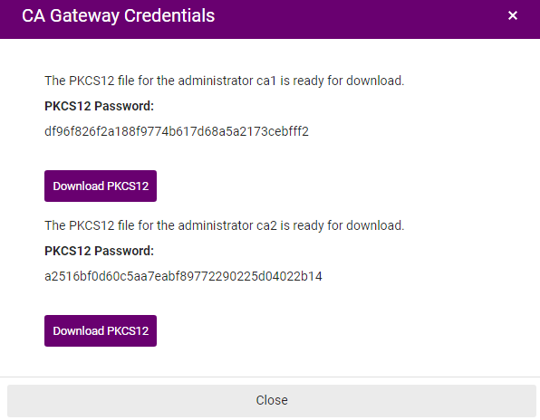 - Click Download PKCS12 to download the PKCS #12 files. Each PKCS #12 includes: