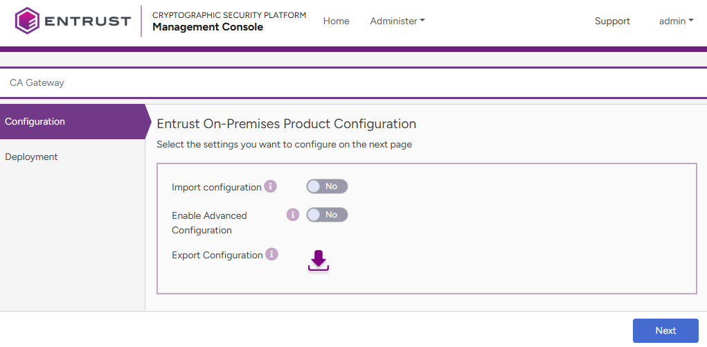 Toggle Import Configuration if you want to import a configuration file previously generated with the Export Configuration option.