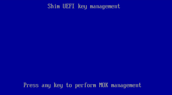 - Reboot the system and wait for the Shim UEFI key management screen.