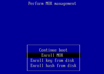 - Select Enroll MOK and press Enter to display the Enroll MOK dialog.
