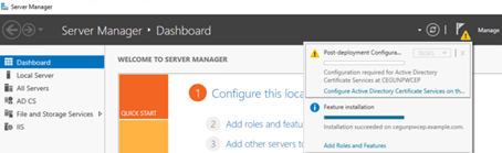 - Select Notifications > Configure Active Directory Certificate Services on the destination server.