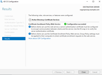 The Certificate Enrollment Policy Web Service requires a TLS certificate in Microsoft IIS. You will set the TLS certificate later, as explained in Configuring the TLS certificate of the Windows endpoints.