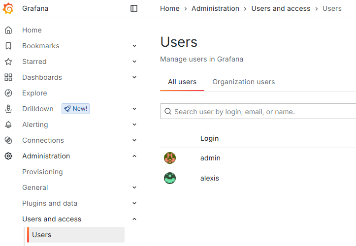 - In the sidebar, select Administration > Users and access > Users.