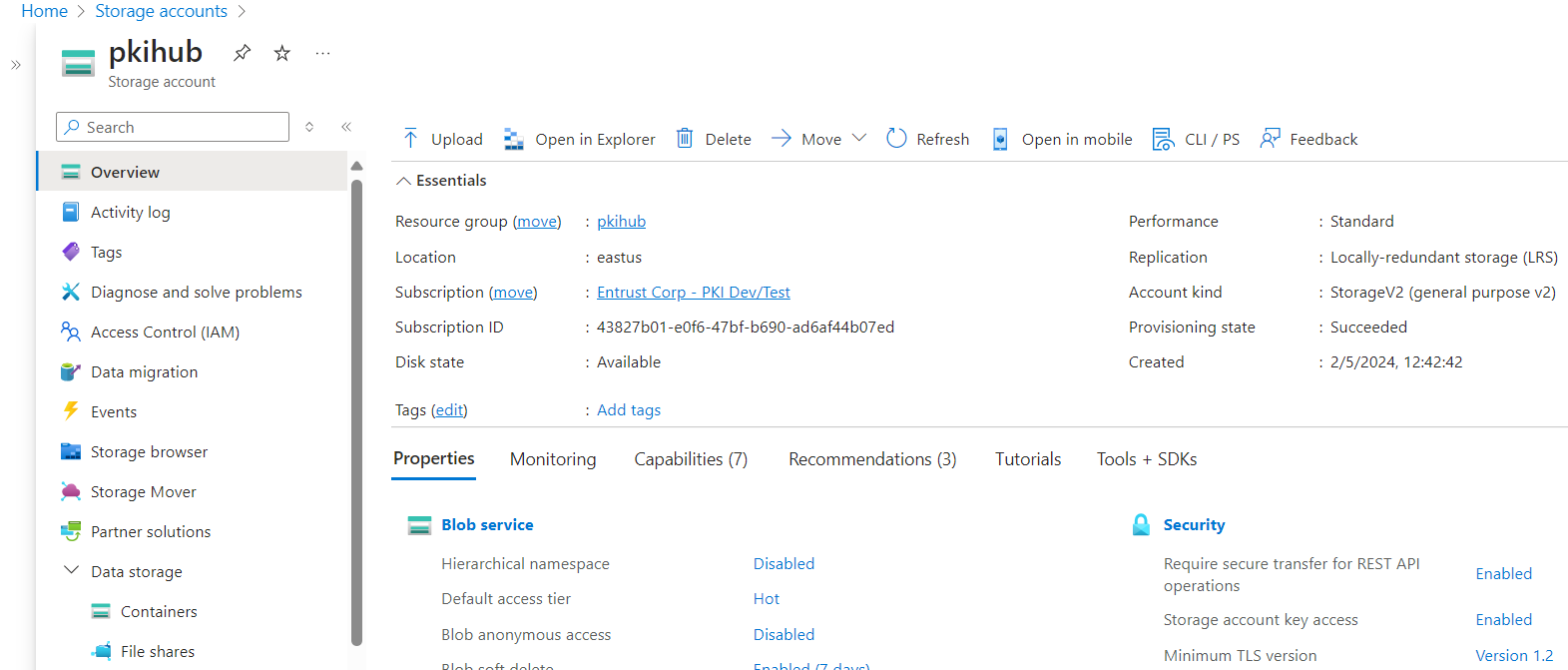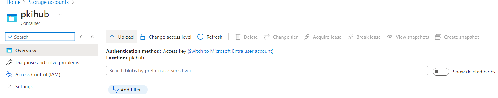 - In the Azure Portal, select the storage account described in Creating the Azure storage account.