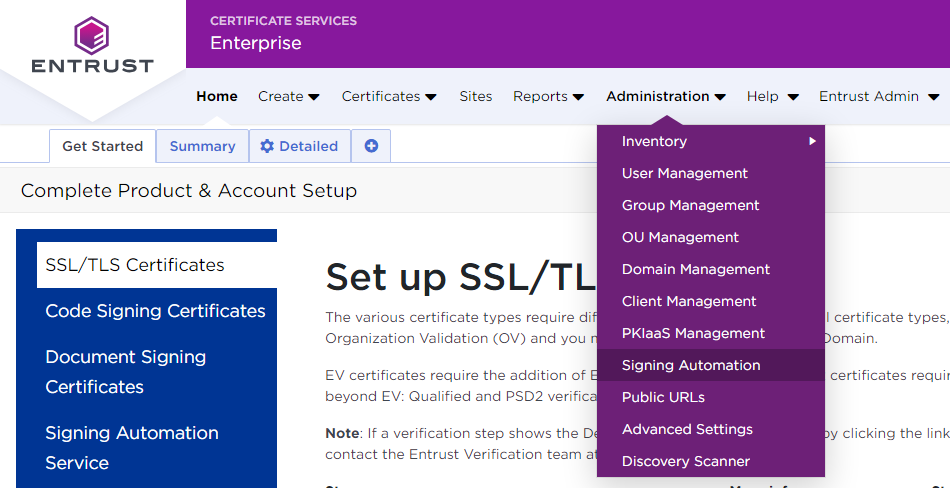 - Log in to the Entrust Certificate Services web portal at cloud.entrust.net