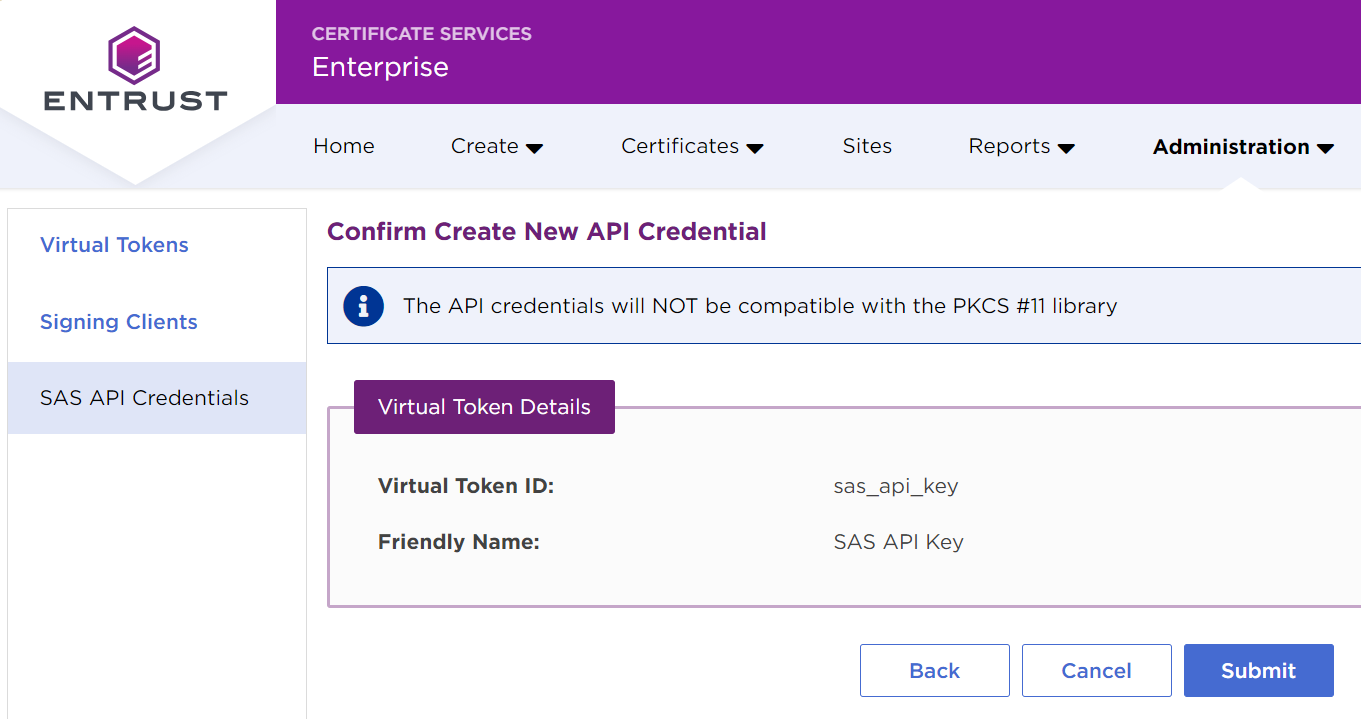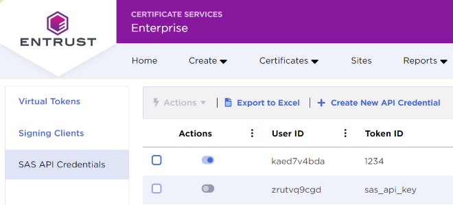- In the sidebar, click on SAS API Credentials to list the generated SAS API credentials.