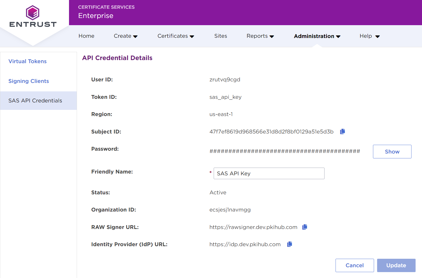 - In the API Credential Details pane, copy the following credential values:- Subject ID